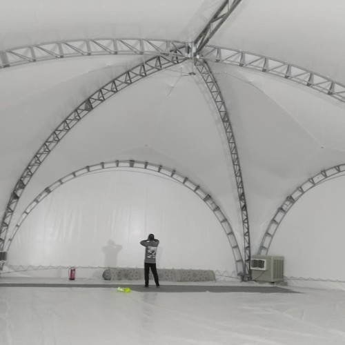 Сертифицированная ПВХ-ткань европейского производства плотностью 600-900 гр/м2, которая выдерживает температурный режим от -50 до +50 градусов, с гарантией 5 лет.